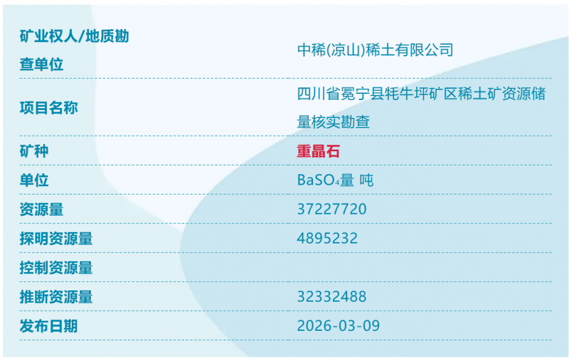 自然资源部“找矿成果发布”栏目近日更新找矿信息,共发现4个固体矿产新矿,3个来自四川省、1个来自甘肃省。